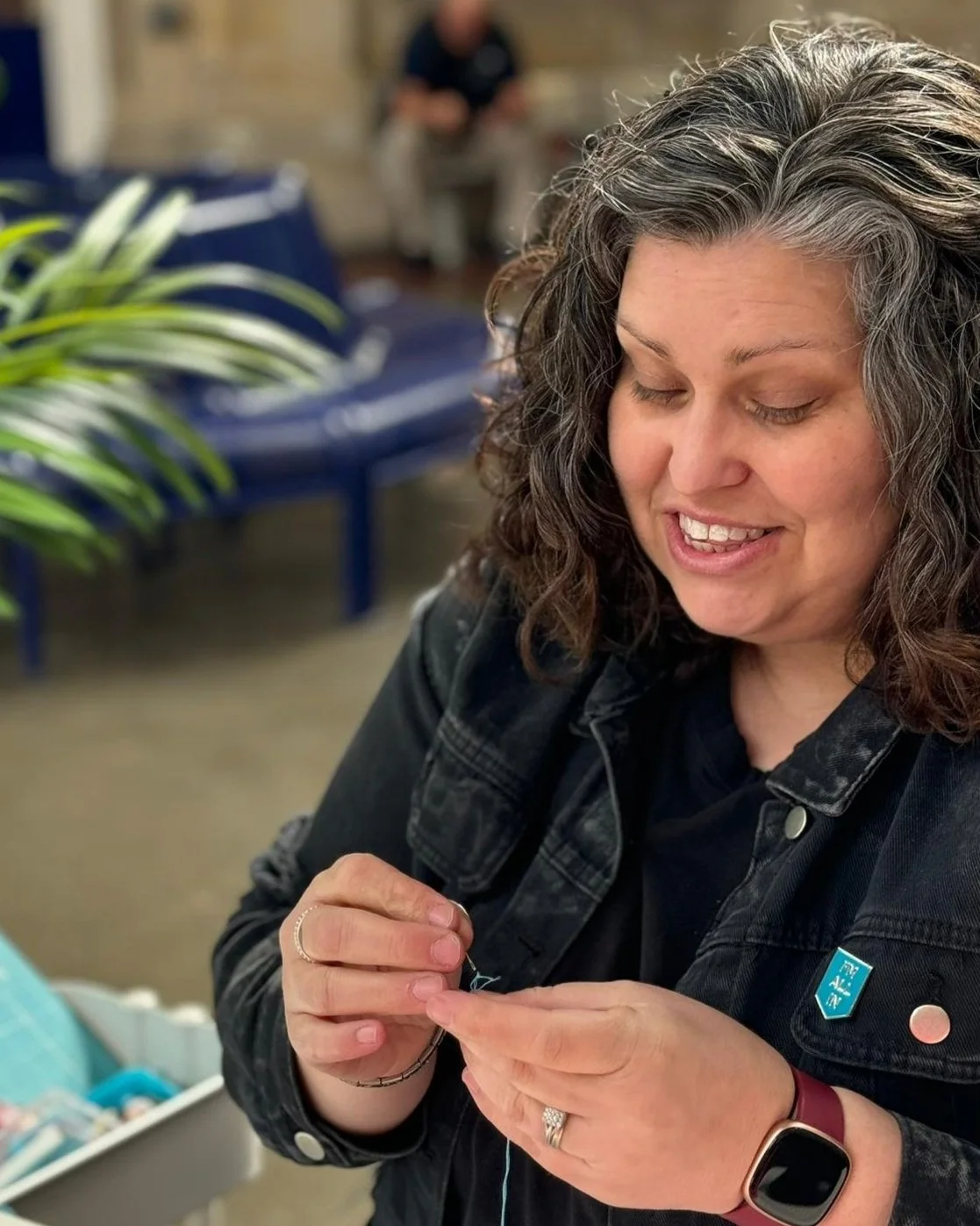 Beth Johnson is a Scottish artist based in the North East of England. Beth’s art practice predominantly centres around embroidery. Having concentrated on traditional forms of the craft, she has, in recent years, begun to develop new expressive mixed media artworks incorporating the artform, which tell stories of connecting people and their interaction with a sense of place. Her background and formal training in Architectural Studies influence the structure and form of her work; of geometric shape and repetition. Her artistic practice over the last few years has lead her to be included in group exhibitions including Baltic’s Open Submission 2020 (shown in 2021) and commissioned to work in collaboration with other artists to transform an empty shopping centre space as part of Stockton International Riverside Festival in 2022, as well as coming together with like-minded artists to form Wild Vision Collective who work together on socially engaged art projects.